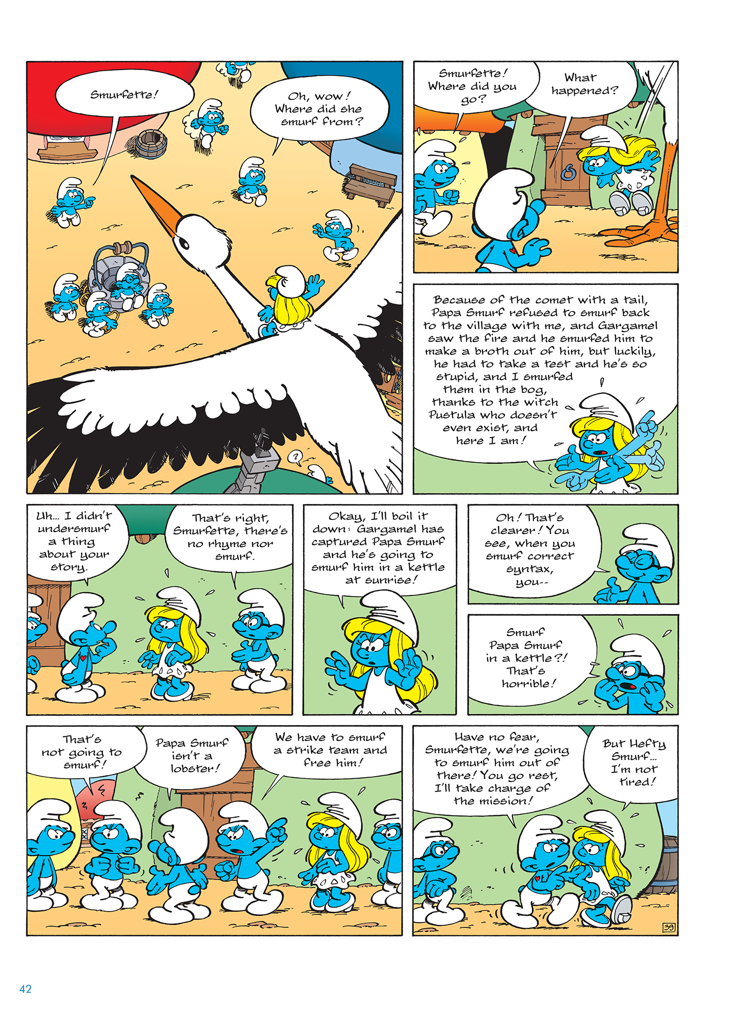 Having had enough, Papa Smurf ordered her to be taken to court and put on trial, where she admitted she had been created by Gargamel and was working under his orders the entire time, while expressing her desire to become a real Smurf.